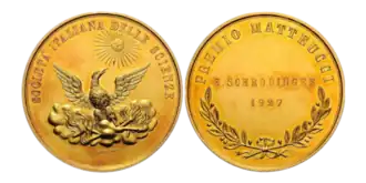 La médaille Matteucci a été créée en 1868 pour récompenser les contributions à la physique fondamentale. À la suite d'un décret royal italien, en date du , la Société italienne des sciences a été autorisée à recevoir une donation de Carlo Matteucci pour remettre un prix aux lauréats.