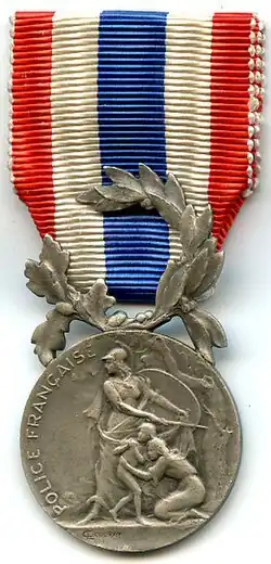- ↑ « Décret n°96-342 du 22 avril 1996 relatif à l'attribution de la médaille d'honneur de la police nationale », Journal Officiel de la République française, (lire en ligne)
