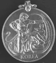 ![]() Médaille de Corée (collection du musée du mémorial de guerre d'Auckland). |