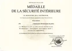 - 1 2 Décret no 2012-424 du 28 mars 2012 portant création de la médaille de la sécurité intérieure.