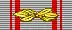 La médaille était portée sur la partie supérieure gauche de la poitrine. La partie pentagonale est recouverte d'un ruban argenté gris et d'un laurier métallique doré. Deux bandes rouges verticales sont tissées dans le ruban argenté, dont l’extérieur mesure 0,5 mm et l’intérieur 2 mm de large. La distance entre le bord et la première bande intérieure est de 3 mm, la deuxième bande est à 0,5 mm de la première. Le ruban de rappel est de même qualité et présente également au centre le groupe de lauriers dorés en miniature[1].