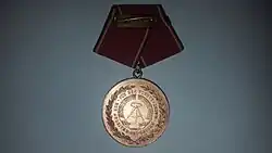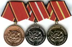 La médaille du mérite de la Nationale Volksarmee était une distinction donnée en République Démocratique Allemande (RDA). La médaille a été créée en trois étapes, bronze, argent et or, le 1er juin 1956. Elle était décernée pour un excellent mérite et un dévouement à la construction et à la consolidation de la NVA. Il s’agit également de promouvoir l’excellence en matière de commandement, de formation politique et militaire et d’éducation des militaires, notamment pour l’excellence dans l’entretien, comme la réparation de l’équipement technique. La médaille pouvait également être décernée à des non-membres de la NVA, mais aussi à des communautés militaires.