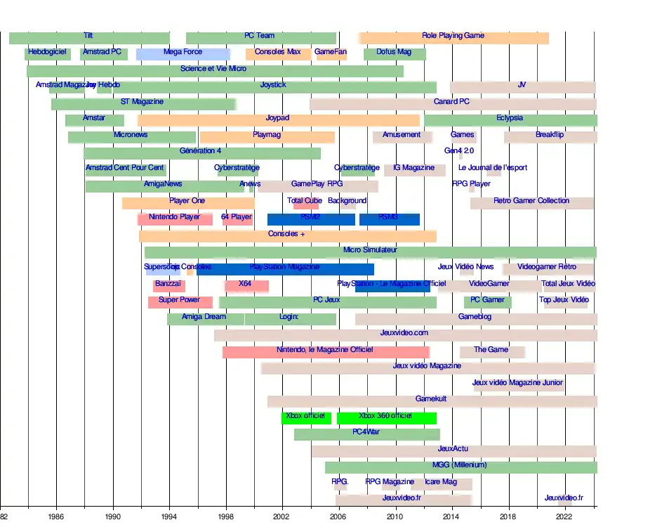 En France, Tilt est le premier magazine consacré aux jeux vidéo : il paraît dès , et jusqu'en . Il faut attendre la rentrée 1987 pour voir apparaître un nouveau poids lourd de la presse PC : Generation 4 (raccourci en Gen4 à partir de 1998) paraît jusqu'en et un dernier numéro publié uniquement sur le Net. Joystick lui emboîte le pas le : il paraît d'abord sous le nom de Joystick Hebdo, avant de passer mensuel en . D'autres magazines consacrés au jeu sur PC suivront dans les années 1990, comme PC Jeux, déclinaison du britannique PC Gamer, fondé en , mais ce sont surtout les magazines spécialisés « consoles » qui envahissent alors les rayonnages, comme Consoles + (au départ un hors-série de Tilt) et Joypad (créé par l'équipe de Joystick).