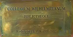 - ↑ R. Burgun, « La Bibliothèque du Collegium Wilhelmitanum », dans Encyclopédie de l'Alsace, Strasbourg, Éd. Publitotal, vol. 1, 1982, p.610.