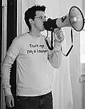 Cet appareil est souvent associé aux mouvements sociaux notamment les syndicats, afin de dynamiser les cortèges. Mais l'ustensile est aussi utilisé par les forces de l'ordre afin de communiquer ou de menacer des personnes qui ne sont pas accessibles de vive voix (occupation de locaux par des grévistes, prise d'otages...) ou encore par les supporteurs d'équipes sportives.