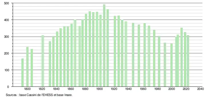 - ↑ Population municipale de référence en vigueur au 1er janvier 2025, millésimée 2022, définie dans les limites territoriales en vigueur au 1er janvier 2024, date de référence statistique : 1er janvier 2022.