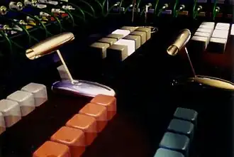 Les mélangeurs vidéo sont des pupitres comprenant des « barres de touches » qui permettent de sélectionner les sources vidéos. Ils permettent la réalisation de transitions en fondus enchaînés d'une source vidéo à l'autre ou encore de faire des incrustations appelées aussi chroma key ou luma key.