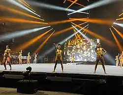 - ↑ Vanessa Maurel, « Mélanie de Jesus Dos Santos aux côtés de Simone Biles pour la tournée « Gold over America » », sur sport.fr, (consulté le ).