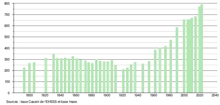 - ↑ Population municipale de référence en vigueur au 1er janvier 2025, millésimée 2022, définie dans les limites territoriales en vigueur au 1er janvier 2024, date de référence statistique : 1er janvier 2022.