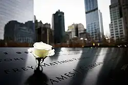 - ↑ (en) David W. Dunlap, « 9/11 Group Suspends Fund-Raising for Memorial », New York Times, (lire en ligne)