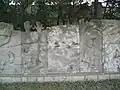 L'exposition extérieure inclut des statues, sculptures, bas-reliefs, tablettes et un important mur listant le nom des victimes, mais également une tablette d'expiation et une promenade du souvenir. Cette dernière montre des empreintes de pieds de survivants, dont les plus récentes datent de 2002.