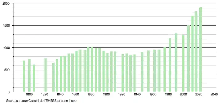 - ↑ Fiches Insee - Populations de référence de la commune pour les années 2006, 2007, 2008, 2009, 2010, 2011, 2012, 2013, 2014, 2015, 2016, 2017, 2018, 2019, 2020, 2021 et 2022.