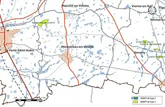 - ↑ « Orthodromie entre Ménestreau-en-Villette et Lamotte-Beuvron », sur fr.distance.to (consulté le ).