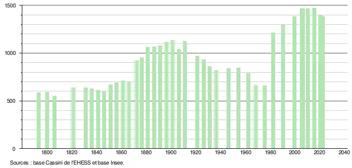 - ↑ Fiches Insee - Populations de référence de la commune pour les années 2006, 2007, 2008, 2009, 2010, 2011, 2012, 2013, 2014, 2015, 2016, 2017, 2018, 2019, 2020, 2021 et 2022.