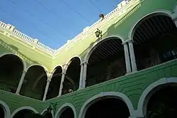 - Le palais municipal de Mérida occupe l'emplacement d'une ancienne pyramide dont les matériaux furent utilisés pour la construction de la cathédrale, de la maison Montejo et pour le reste de la ville.