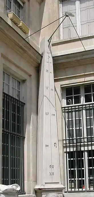 - ↑ Voir une image de la méridienne et de son gnomon : accès en ligne.