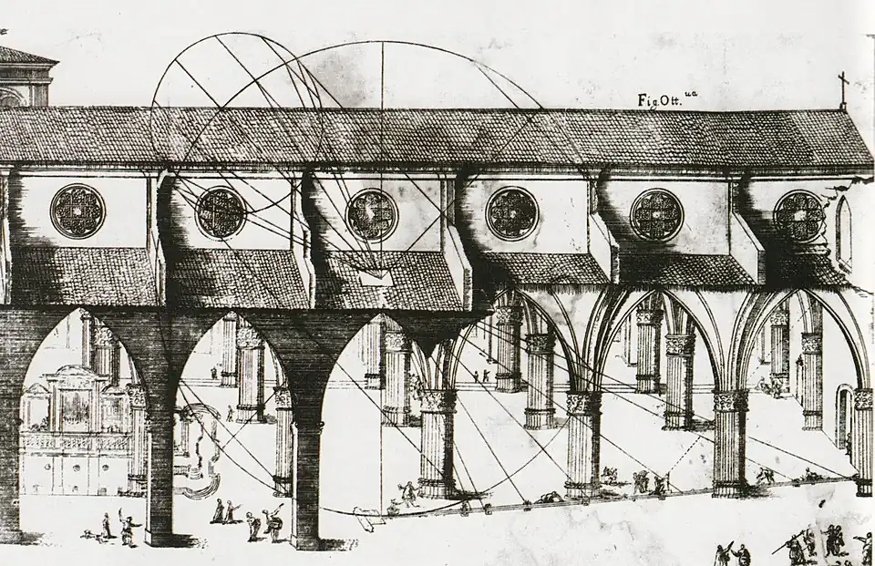 - ↑ En 1583, à Rome, Danti trace une méridienne partielle dans la Tour des Vents ; « la ligne dévie de seulement 1° 10' par rapport au nord, ce qui suggère que Danti aurait pu faire beaucoup mieux à San Petronio. » (d'après John L. Heilbron, Op. cit., p. 84).