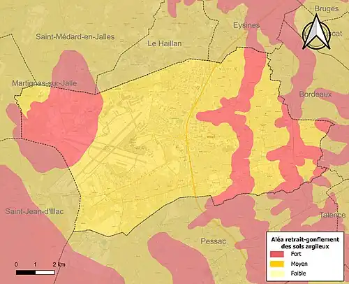 Les communes limitrophes sont Bordeaux, Eysines, Le Haillan, Martignas-sur-Jalle, Pessac, Saint-Jean-d'Illac et Saint-Médard-en-Jalles.