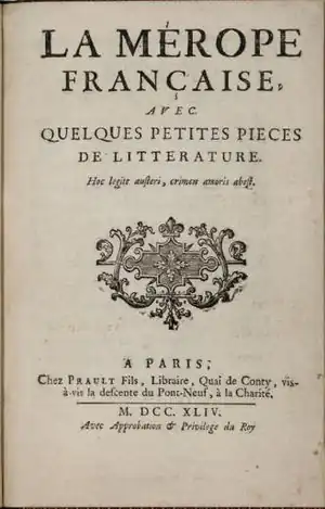 Mérope (ou La Mérope française) est une tragédie en vers et cinq actes de Voltaire représentée pour la première fois à la Comédie-Française le .