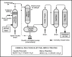 Ce procédé n'est utilisé que pour des produits pétroliers contenant de faibles quantités de soufre (soufre mercaptan). Pour éliminer celui-ci, on le transforme en disulfure. Ce dernier reste néanmoins dans la coupe pétrolière. Il existe un procédé Mérox extractif qui élimine ce disulfure.
