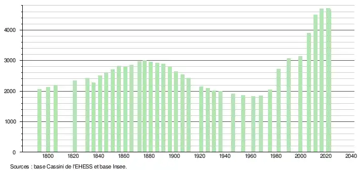 - ↑ Fiches Insee - Populations de référence de la commune pour les années 2006, 2007, 2008, 2009, 2010, 2011, 2012, 2013, 2014, 2015, 2016, 2017, 2018, 2019, 2020, 2021 et 2022.