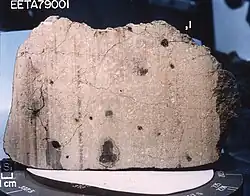 EETA 79001 (en), une météorite martienne trouvée en Antarctique en 1979. | |