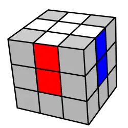 - Deux premières couches (F2L) - Dans les F2L, les pièces des 4 coins qui doivent aller sur la face où la croix est résolue et des arêtes qui, une fois placés doivent être verticalement adjacents à ces coins sont appariées et ensuite déplacées vers leur emplacement correct pour former deux couronnes autour de la croix. Il y a 42 cas standards pour chaque paire coin-bord, y compris le cas où le problème est déjà résolu. Cela peut aussi être fait intuitivement.