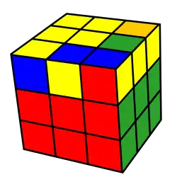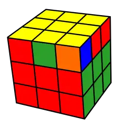 - Permutation des pièces de la dernière face (PLL) - La dernière étape consiste à déplacer les pièces de la face supérieure tout en préservant leur orientation. Il y a un total de 21 algorithmes pour cette étape. Ils se distinguent par des noms de lettre, généralement basés sur leur apparence, selon le déplacement des pièces échangées (par exemple, permutation A, permutation F, permutation T, etc. ). La version PLL en deux temps résout les coins en premier et les arêtes ensuite. Elle utilise six algorithmes, deux pour la permutation de coins et quatre pour la permutation d'arêtes[4].