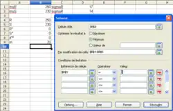 Puis on va dans le menu Outil > Solveur, et dans la boîte de dialogue Solveur qui apparaît, on met :