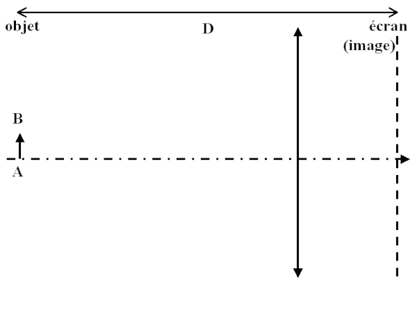 On fixe , la distance entre l'objet (A) et l'écran (A') et on pose et , donc