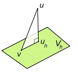 En utilisant les mêmes propriétés de , ainsi que l'orthogonalité de l'erreur, on obtient l'inégalité pour tout :