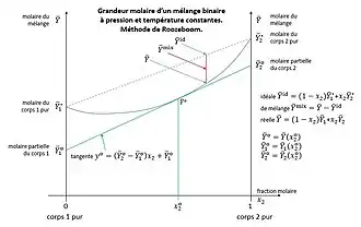 Dans ces conditions, les grandeurs ne dépendent plus que d'une seule fraction molaire. La méthode de Roozeboom est ainsi ramenée au cas des mélanges binaires et l'on trace la grandeur molaire