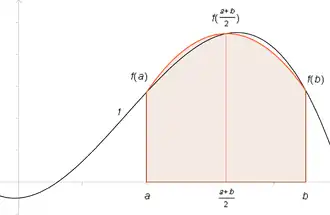 Cette méthode utilise l'approximation d'ordre 2 de f par un polynôme quadratique P prenant les mêmes valeurs que f aux points d'abscisse a, b et m = (a + b)⁄2. Pour déterminer l'expression de cette parabole (polynôme de degré 2), on utilise l'interpolation lagrangienne. Le résultat peut être mis sous la forme :