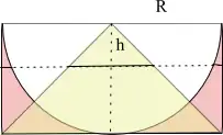 Les segments redressés sont donc les indivisibles d'une parabole de base R et de hauteur πR/2. Depuis Archimède, on sait que l'aire d'une telle surface est égale au 2/3 du rectangle qui la contient.