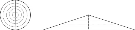 Un triangle de base L = 2πR et de hauteur R est aussi constitué de lignes de longueur 2πr où r varie de 0 à R. Ces segments sont les indivisibles du triangle.