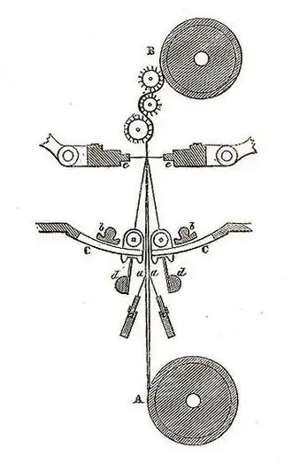 À l'origine, les chariots contenant les bobines des fils de trame étaient non pas poussés, mais tirés par un système d'accroche appelé fetchers ou catch bars. En 1809, John Heathcoat installe deux rangées de chariots, facilitant le passage de ceux-ci entre les fils de chaîne, cette machine est appelée Old Loughborough. Il fallait alors 60 mouvements pour obtenir une maille, contre 12 aujourd'hui. Cela permettait de produire mille mailles à la minute, contre 5 ou 6 lorsque le travail est effectué à la main. Le premier métier produisait un tulle d'un pouce (2,7 cm) de largeur, il arriva par la suite à produire un yard (91,5 cm) de largeur. En 1813, il perfectionna sa machine pour produire du tulle en bandes, puis en 1815, il y ajouta le mouvement rotatif.