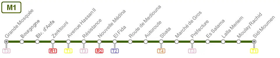 Le Schéma de Déplacement Urbain de Casablanca présentait dans les années 2000 un tracé final de la ligne, comportant 17 stations, permettant des correspondances avec chacune des 4 lignes de tramway prévues.
