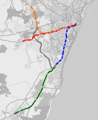 | Ligne | Trajet | Longueur (km) | Stations | Durée (min) | Fonctionnement |
