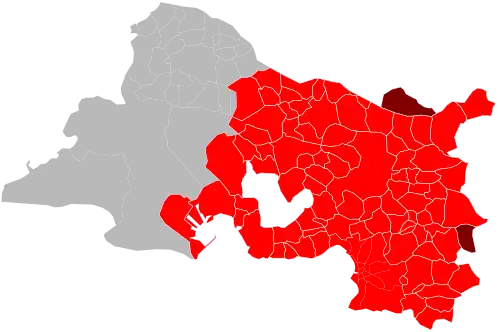 Territoire de la métropole d'Aix-Marseille-Provence (en rouge foncé). | |