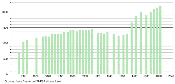 - ↑ Fiches Insee - Populations de référence de la commune pour les années 2006, 2007, 2008, 2009, 2010, 2011, 2012, 2013, 2014, 2015, 2016, 2017, 2018, 2019, 2020, 2021 et 2022.