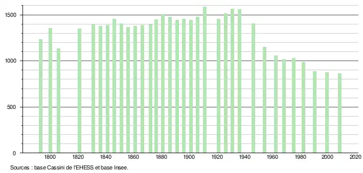 La commune avait près de 1 500 habitants à la fin du XIXe siècle, le niveau maintenu jusqu'en 1940. Seulement, l'attractivité n'étant plus au rendez-vous, la courbe démographique chute progressivement tandis que l'âge moyen du bourg n'a jamais été aussi élevé.