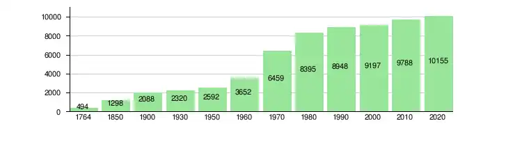 Le graphique ci-après montre l'évolution de la population depuis 1764[8]. Celle-ci a a connu une croissance rapide à partir de 1965[6].