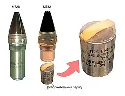 - Tiré à partir d'un canon M126/M126A1 dans des obusiers automoteurs M109 avec Charge 7