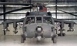 Un MH-60L Black Hawk « Direct Action Penetrator » utilisé exclusivement par le 160th Special Operations Aviation Regiment armé de 2 miniguns M134 de part et d'autre du cockpit, d'un total de quatre missiles air-air Stinger AIM-92 Stinger, d'un canon automatique de marque chain gun M230 et d'un lanceur M299 avec 2 missiles antichars AGM-114 Hellfire sur les moignons d'ailes.