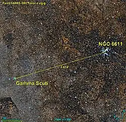 M15 est à environ 2,6° au sud-est de l'étoile Gamma Scuti.