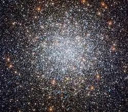 Image de M3 construite en utilisant les données en lumière visible et en infrarouge captées par le télescope spatial Hubble.
