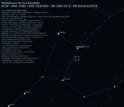 - 1 2 3 4 5 (en) « Messier Objects: Guide to the Bright Galaxies, Nebulae and Clusters Listed in the Messier Catalogue, Messier 97: Owl Nebula » (consulté le )