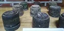 Le détonateur se visse à la base de la mine et une bague est fixée à la goupille de sécurité.