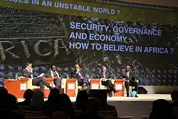 Les sujets économiques et énergétiques ont été débattues en présence notamment de Pierre Gadonneix, Président du Conseil mondial de l’Énergie, de Abbas Al Naqqi, Secrétaire Général de l’Organisation des pays arabes exportateurs de pétrole (OAPEP), de Colin Coleman, Managing Director de Goldman Sachs, de Yong Wang, Vice-président du China African Dévelopment Fund, ainsi que de Anne Marie Chidzero, Présidente de Africap Microfinance[6].