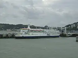 Le MS Pride of Calais (renommé Ostend Spirit) dans le port d'Ostende. | |